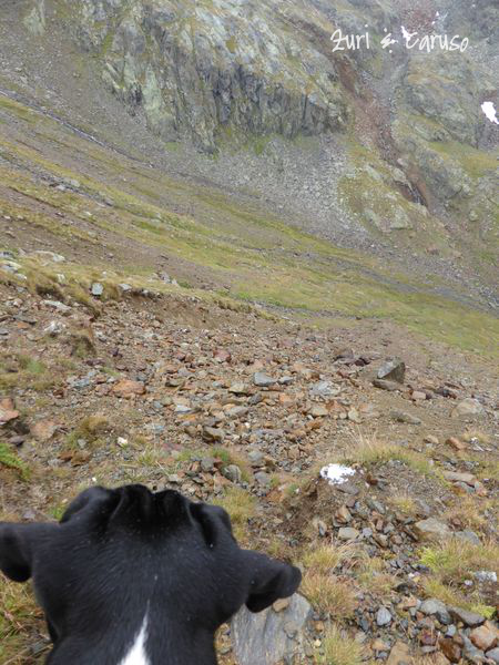 Auf einem gut ausgetretenen Pfad, der teilweise aus Steinen gebaut ist, wanderten wir hinab ins Schnalstaler Dorf Kurzras. Unterhalb von uns am Hang war eine Gruppe Steinböcke unterwegs, und die seltsamen kleinen Pelzflitzer pfiffen auch schon wieder munter hinter uns her. Murmeln kann man das nun wirklich nicht gerade nennen, was die so von sich geben…